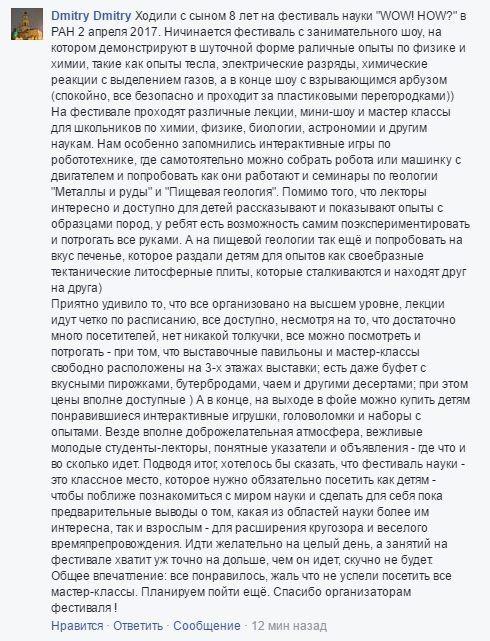На прошлой неделе в Малых залах президиума Российской академии наук прошел Четвертый Фестиваль занимательных наук для детей и взрослых «Wow! How?». Побывала на фестивале и «Вечерка»